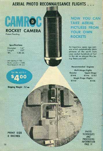 In 1968, Estes was promoting Camoc for stereo photography. The idea being to launch Camroc twice, with the second launch a few degrees off, to produce a stereo image pair.