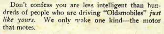 confess. ---> O.O.S. (Olds Owner Syndrome) was diagnosed around 1902, concerning a severe lack of self-respect in the presence of other "Oldsmobile" owners. | ![]() | |
