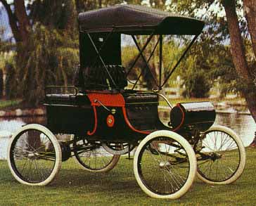 | In the 1903, the Olds Motor Works shipped the first car to bear the mark "Oldsmobile." Olds had, previously, built 11 different models powered by either gasoline or electricity for upscale automobile customers. In 1901, a fire destroyed the Olds factory, and the only vehicle saved was a low-cost, gasoline powered prototype. Two years later, the "Oldsmobile" shipped. Olds sold 12,500 of the curved dash buggys in the first year, for $650 apiece. (For comparison, competitor Buick sold 37 vehicles in 1904) | ![]() |